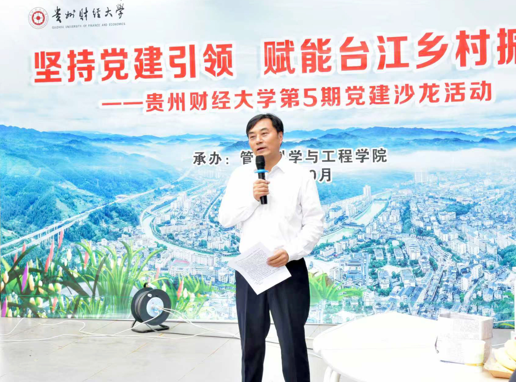 为进一步探索学校抓党建促台江乡村振兴的路径方法,10月15日,由党委组织部主办,管理科学与工程学院党委承办的第5期党建沙龙活动在学校东区文溯楼5楼举行。本次活动以“坚持党建引领,赋能台江乡村振兴”为主题,学校全体专兼职组织员齐聚一堂,通过主题发言、交流研讨、互动问答等多元环节,共话抓党建促台江乡村振兴的思路。活动由管理科学与工程学院党委副书记张颖主持。
